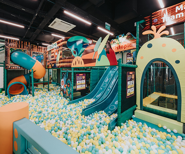Fuel your child’s imagination (and your own inner kid) with racing tracks, mini kitchens, and arcade games like air hockey and bowling. It’s a lively, hands-on playground where creativity and energy run wild across tunnels, sand pits, and bouncy ball zones.